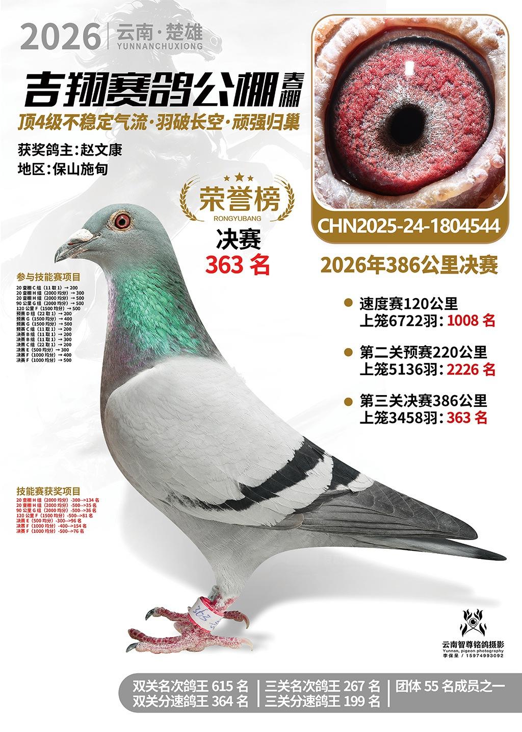 楚雄吉翔公棚(春棚)2026年386公里决赛获奖鸽欣赏
