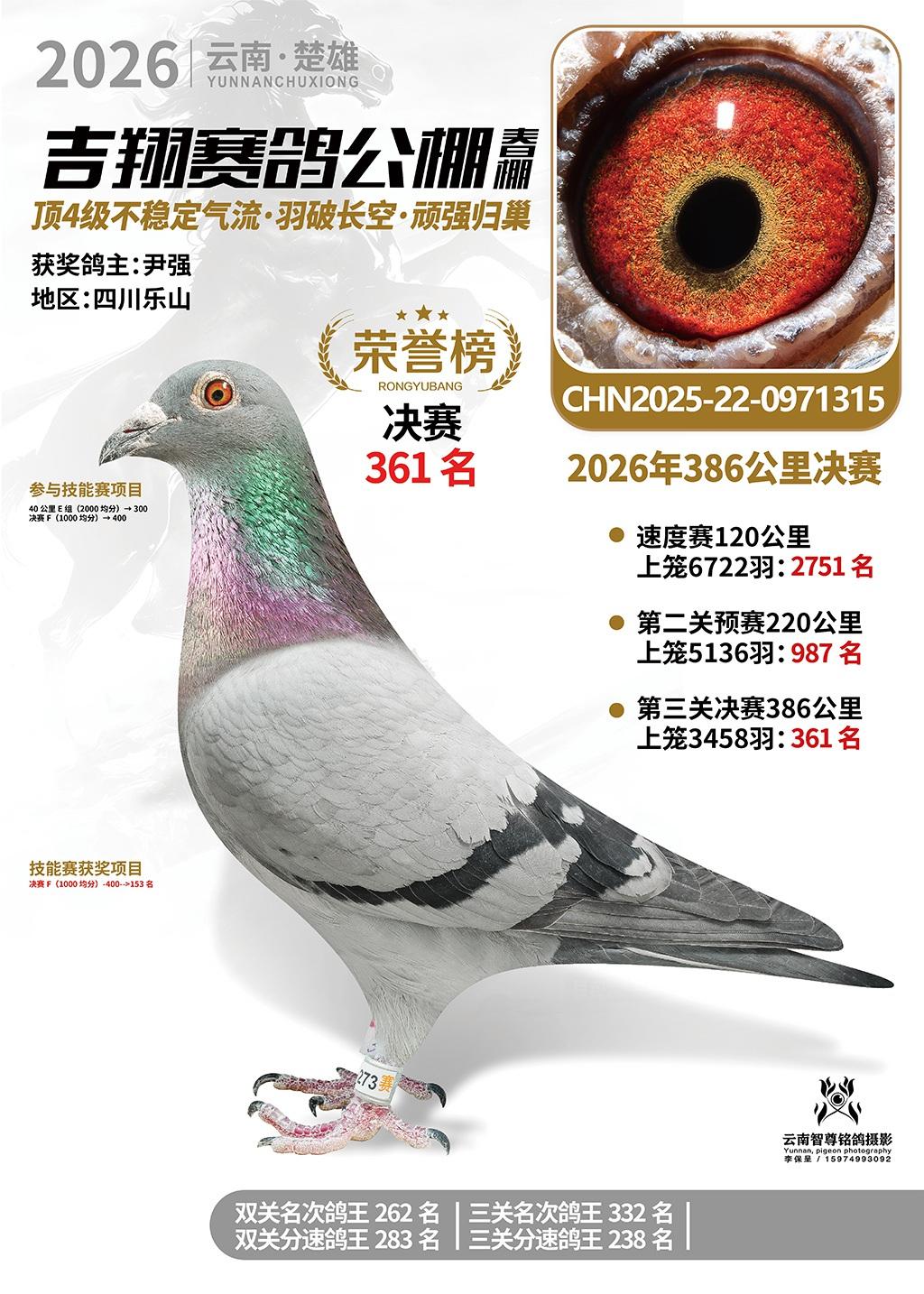 楚雄吉翔公棚(春棚)2026年386公里决赛获奖鸽欣赏