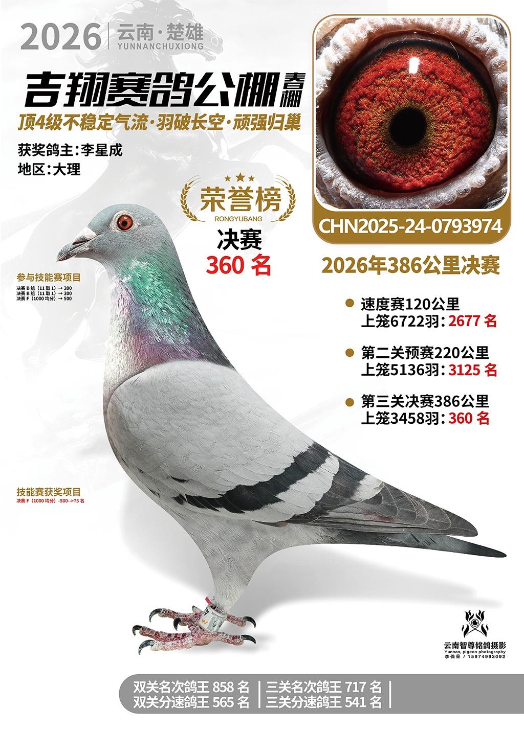 楚雄吉翔公棚(春棚)2026年386公里决赛获奖鸽欣赏