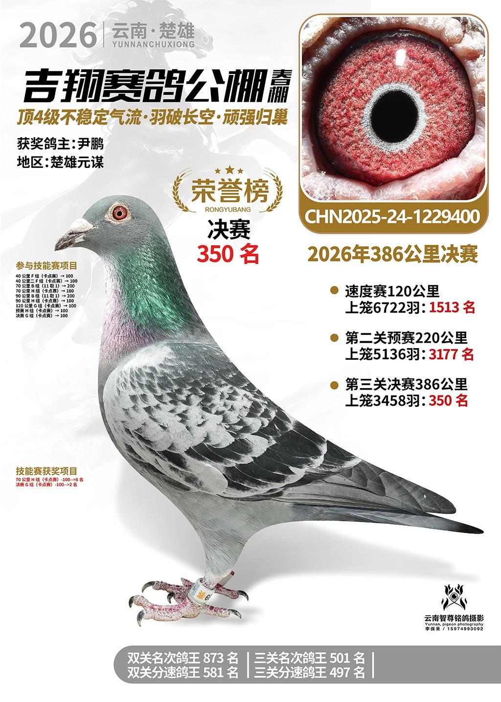楚雄吉翔公棚(春棚)2026年386公里决赛获奖鸽欣赏