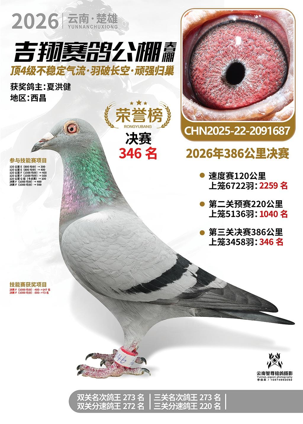 楚雄吉翔公棚(春棚)2026年386公里决赛获奖鸽欣赏