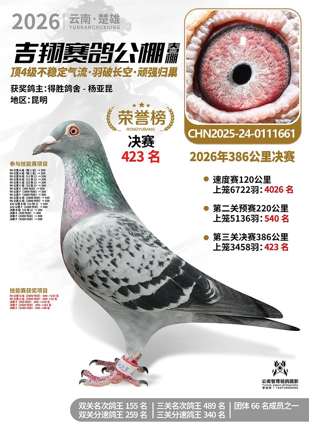 楚雄吉翔公棚(春棚)2026年386公里决赛获奖鸽欣赏