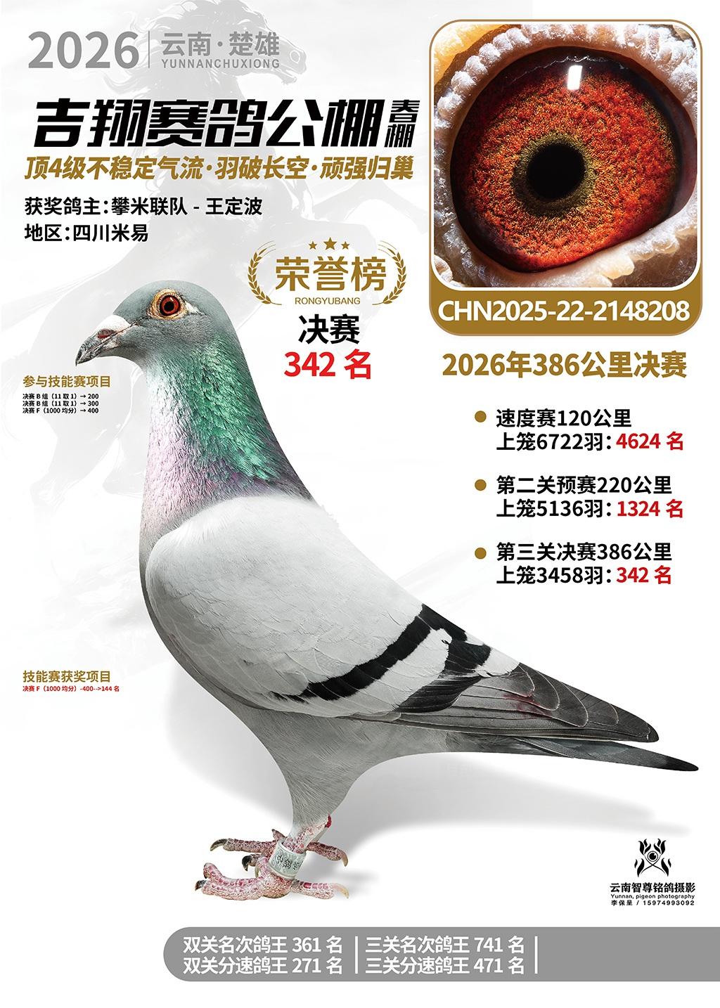 楚雄吉翔公棚(春棚)2026年386公里决赛获奖鸽欣赏