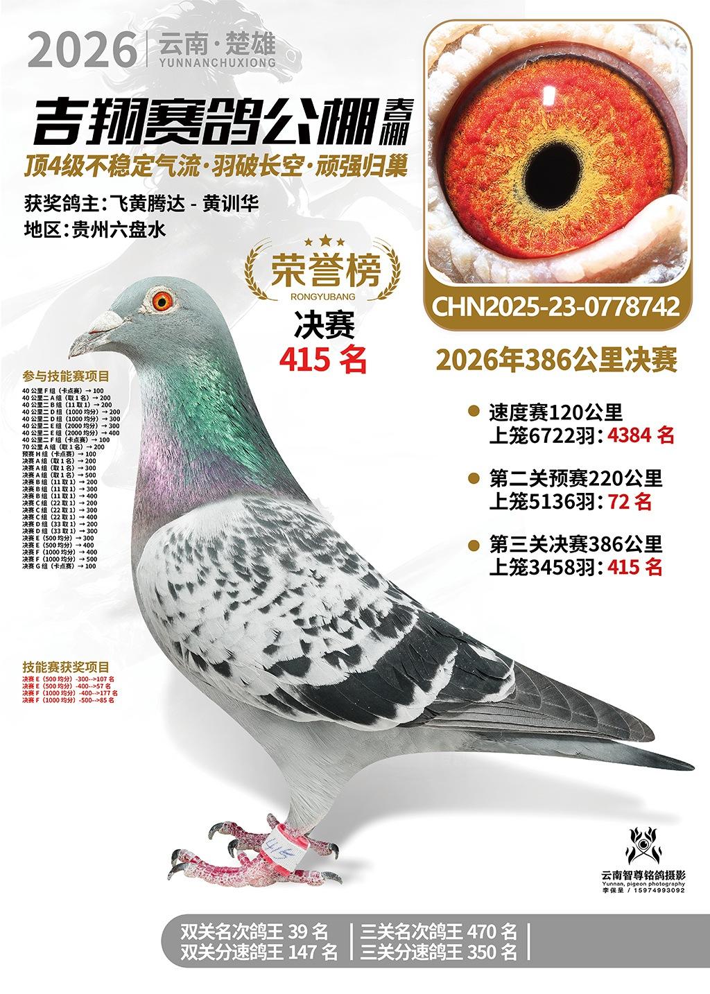 楚雄吉翔公棚(春棚)2026年386公里决赛获奖鸽欣赏