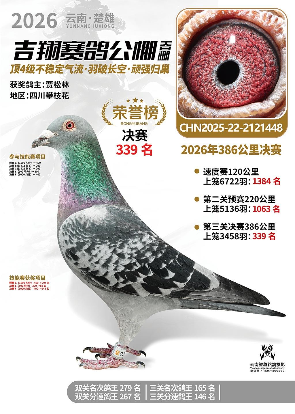 楚雄吉翔公棚(春棚)2026年386公里决赛获奖鸽欣赏