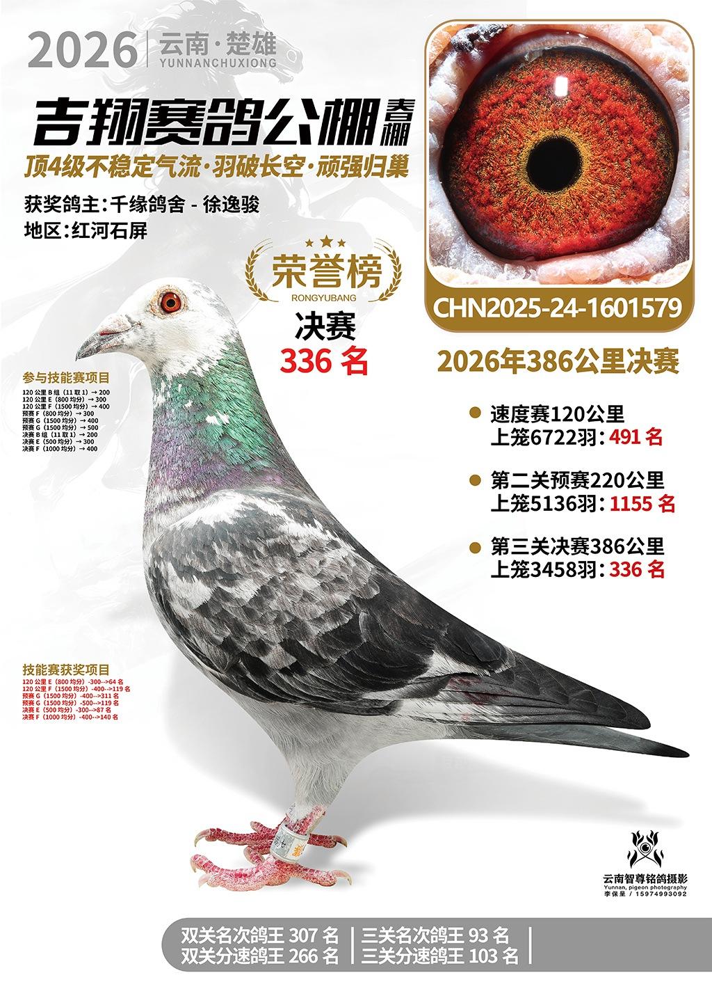 楚雄吉翔公棚(春棚)2026年386公里决赛获奖鸽欣赏