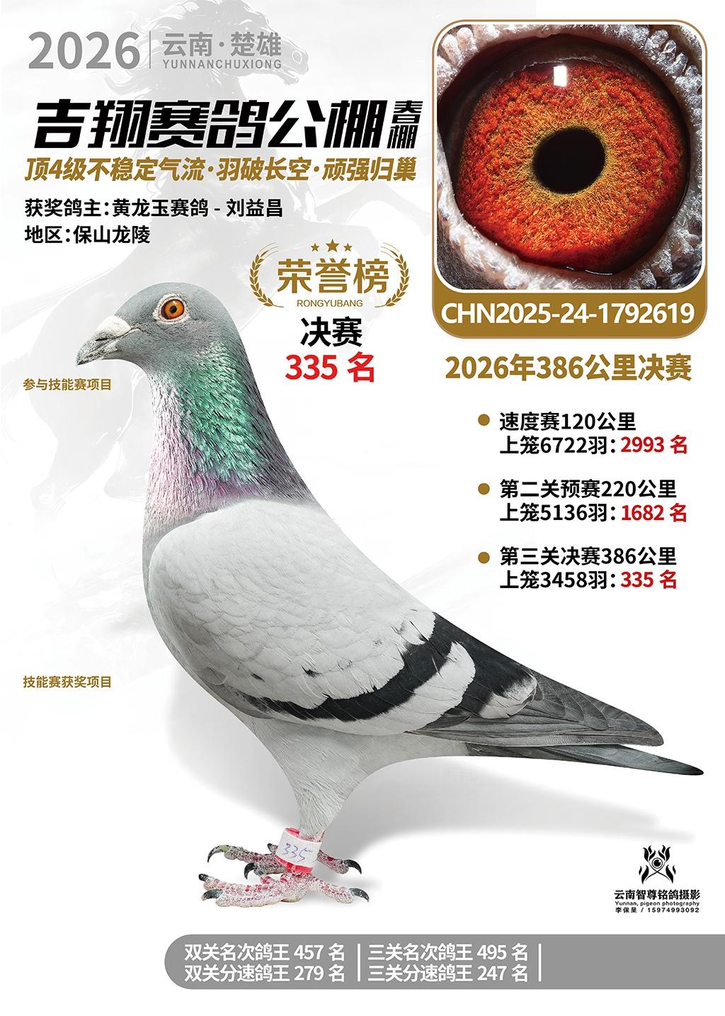 楚雄吉翔公棚(春棚)2026年386公里决赛获奖鸽欣赏