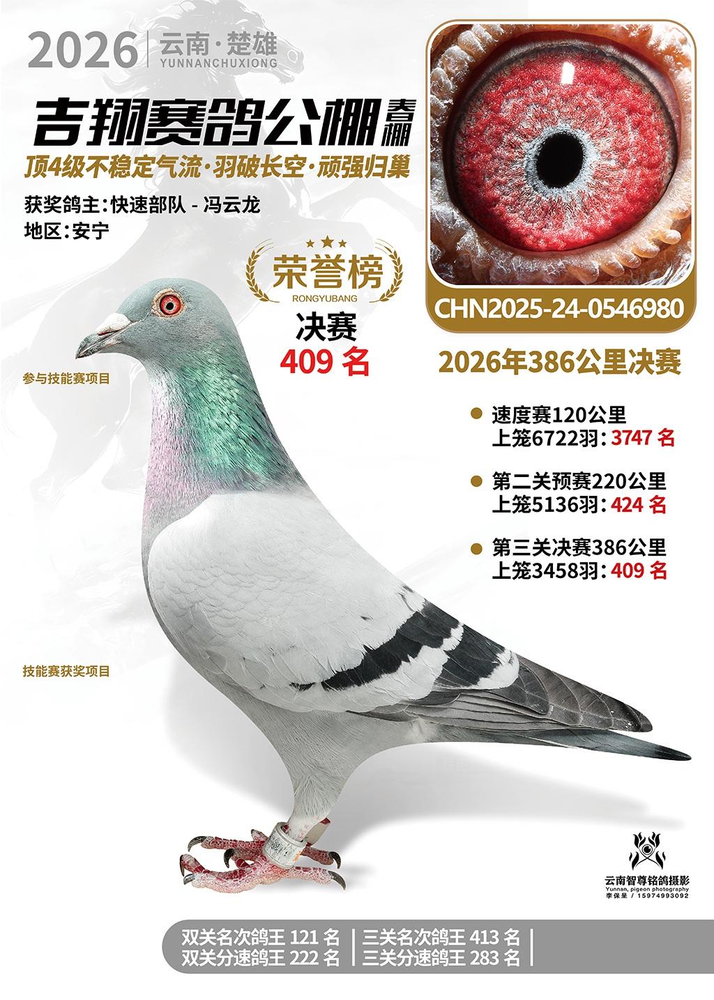 楚雄吉翔公棚(春棚)2026年386公里决赛获奖鸽欣赏
