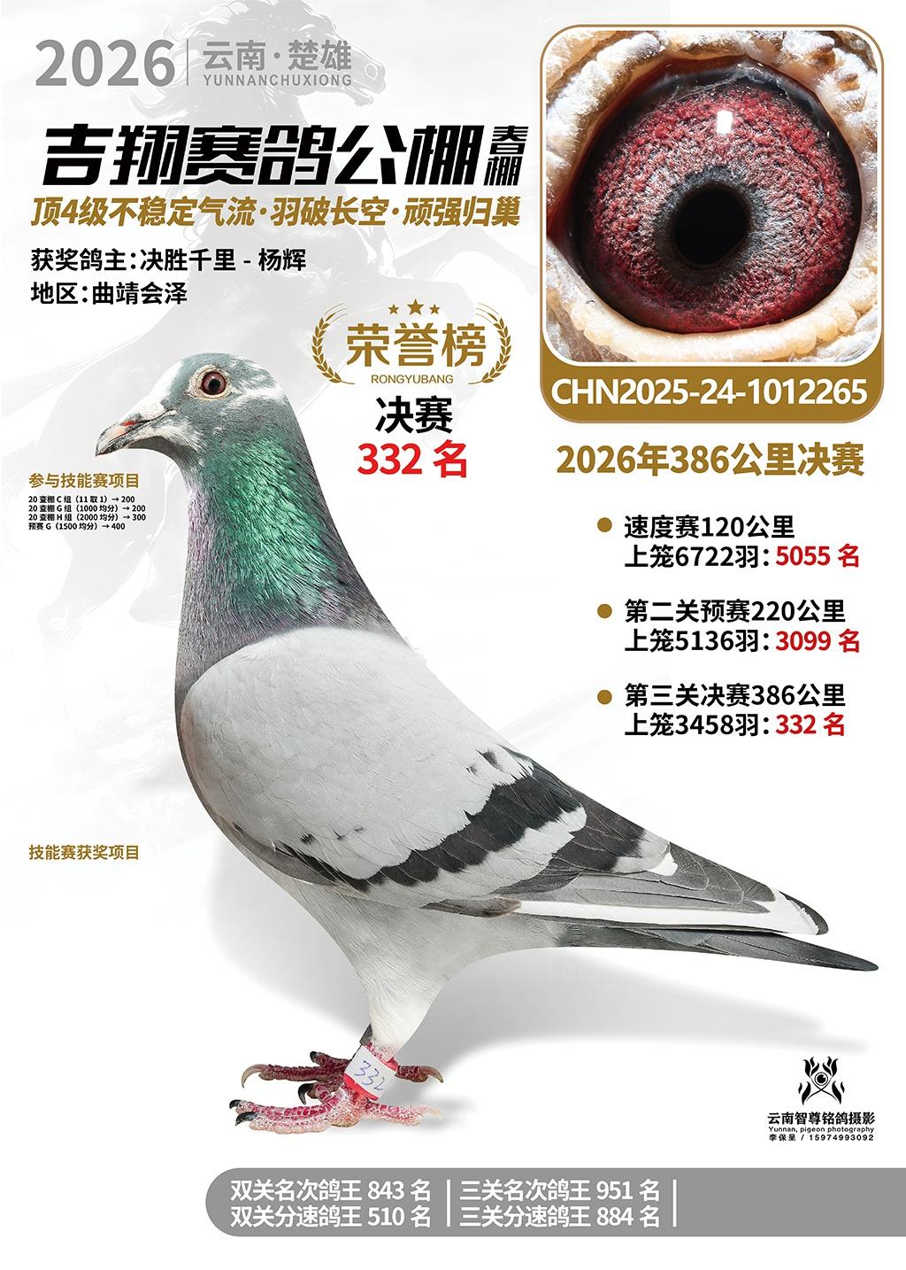 楚雄吉翔公棚(春棚)2026年386公里决赛获奖鸽欣赏