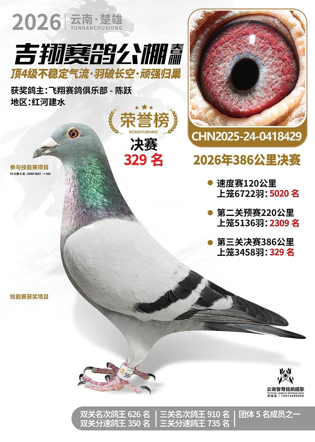 楚雄吉翔公棚(春棚)2026年386公里决赛获奖鸽欣赏