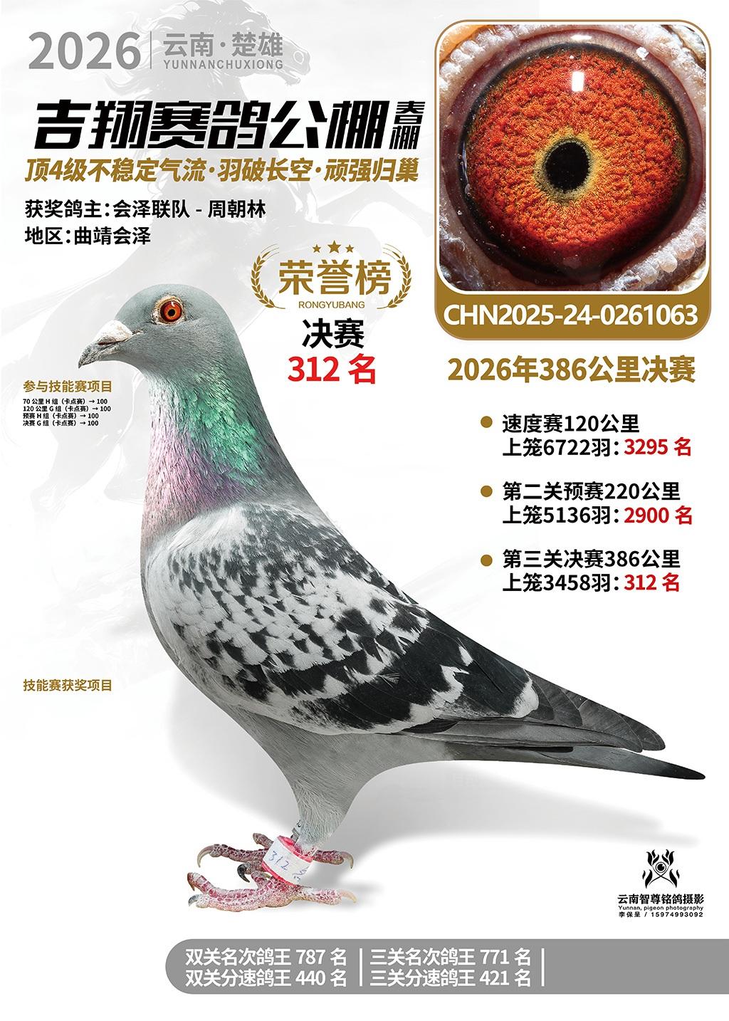 楚雄吉翔公棚(春棚)2026年386公里决赛获奖鸽欣赏