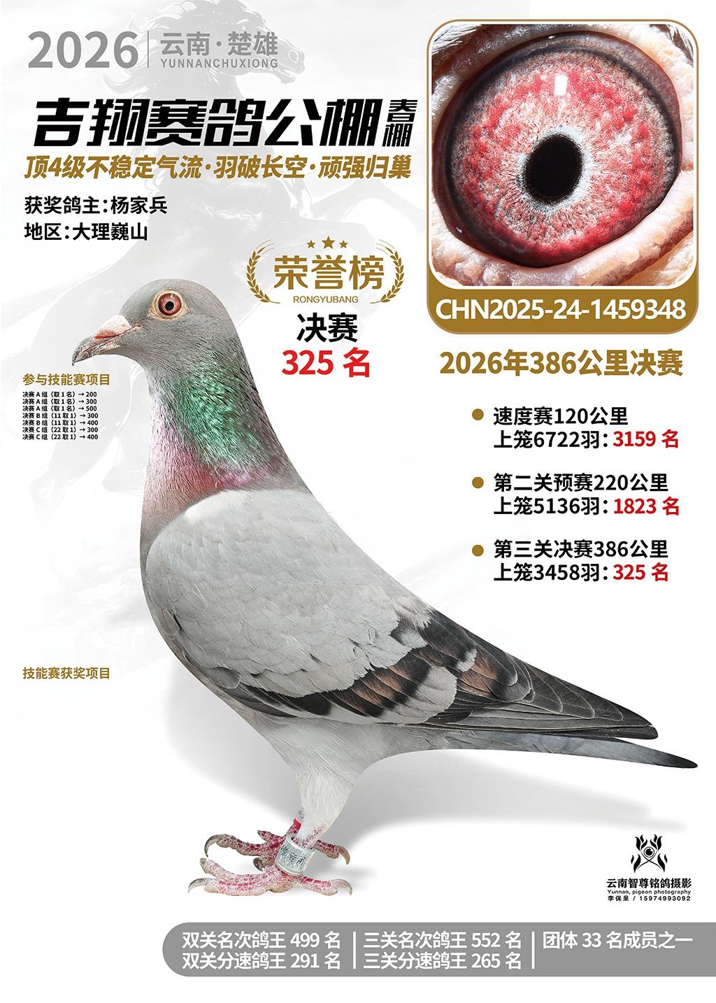 楚雄吉翔公棚(春棚)2026年386公里决赛获奖鸽欣赏