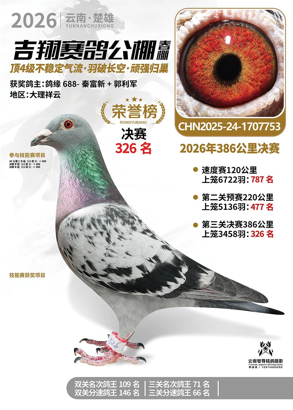 楚雄吉翔公棚(春棚)2026年386公里决赛获奖鸽欣赏