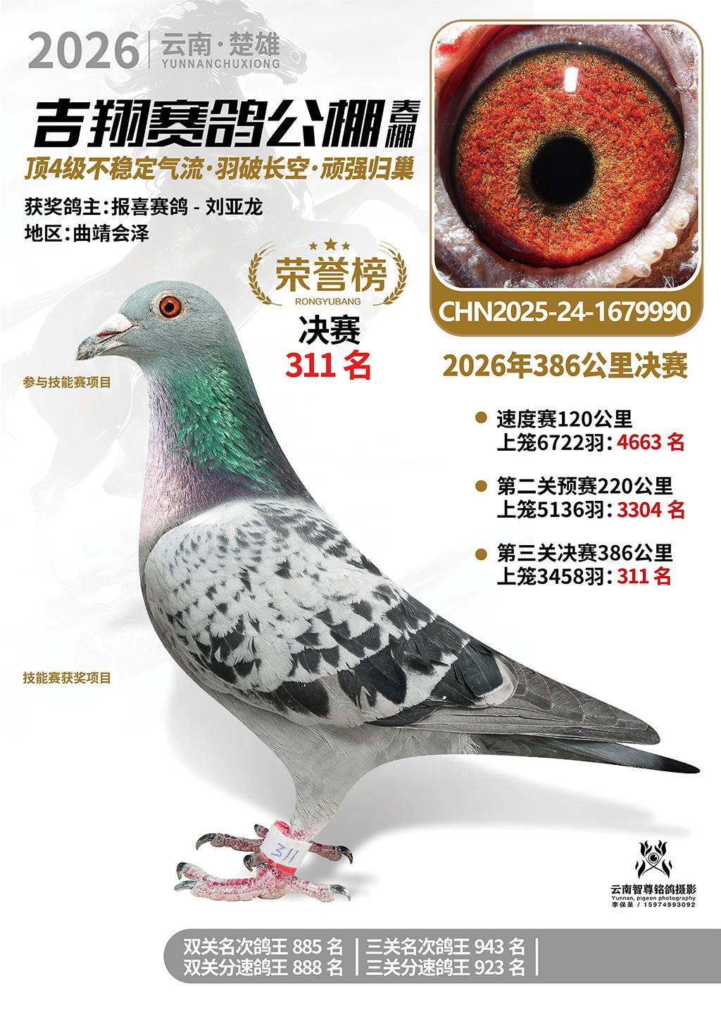 楚雄吉翔公棚(春棚)2026年386公里决赛获奖鸽欣赏