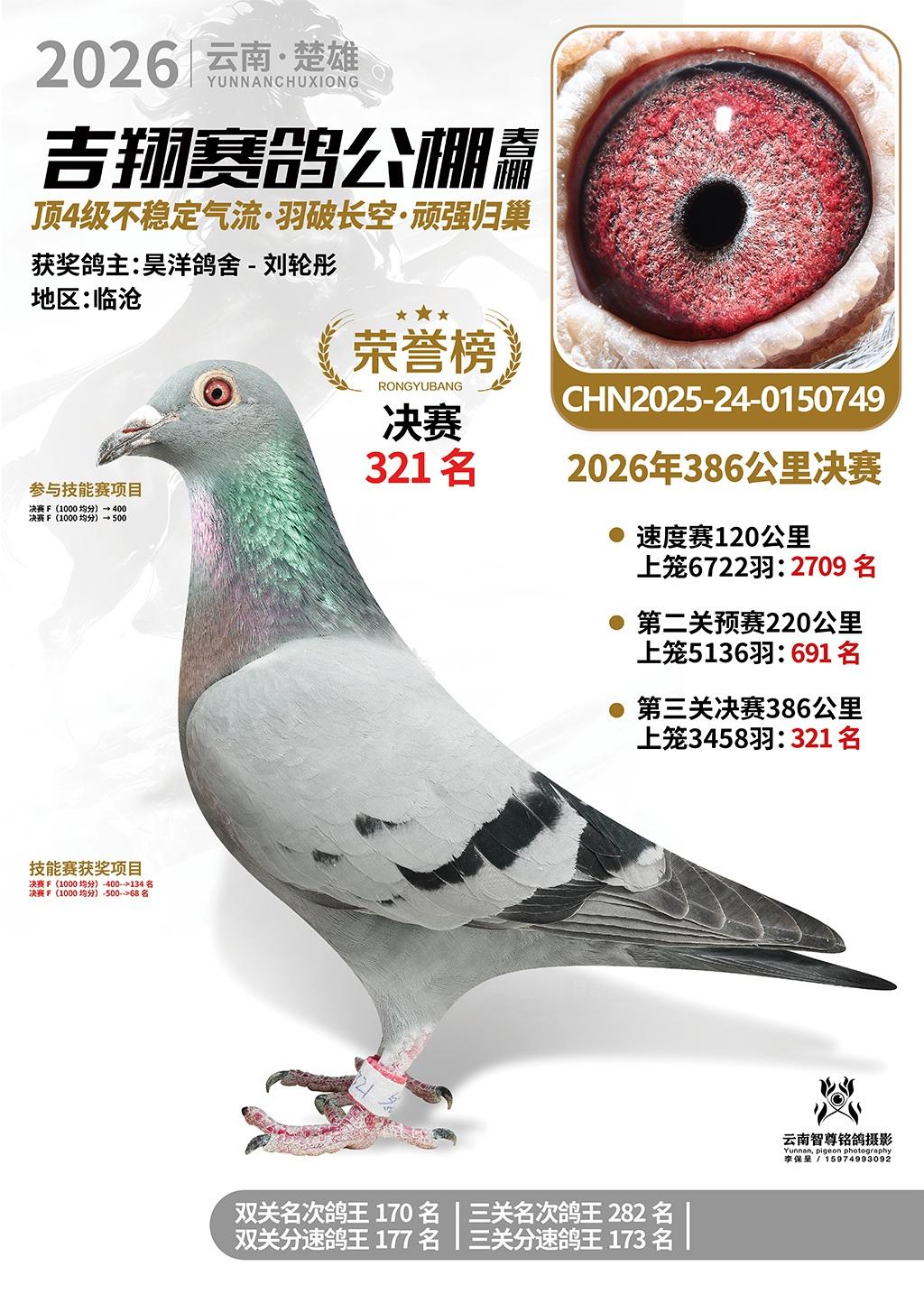 楚雄吉翔公棚(春棚)2026年386公里决赛获奖鸽欣赏