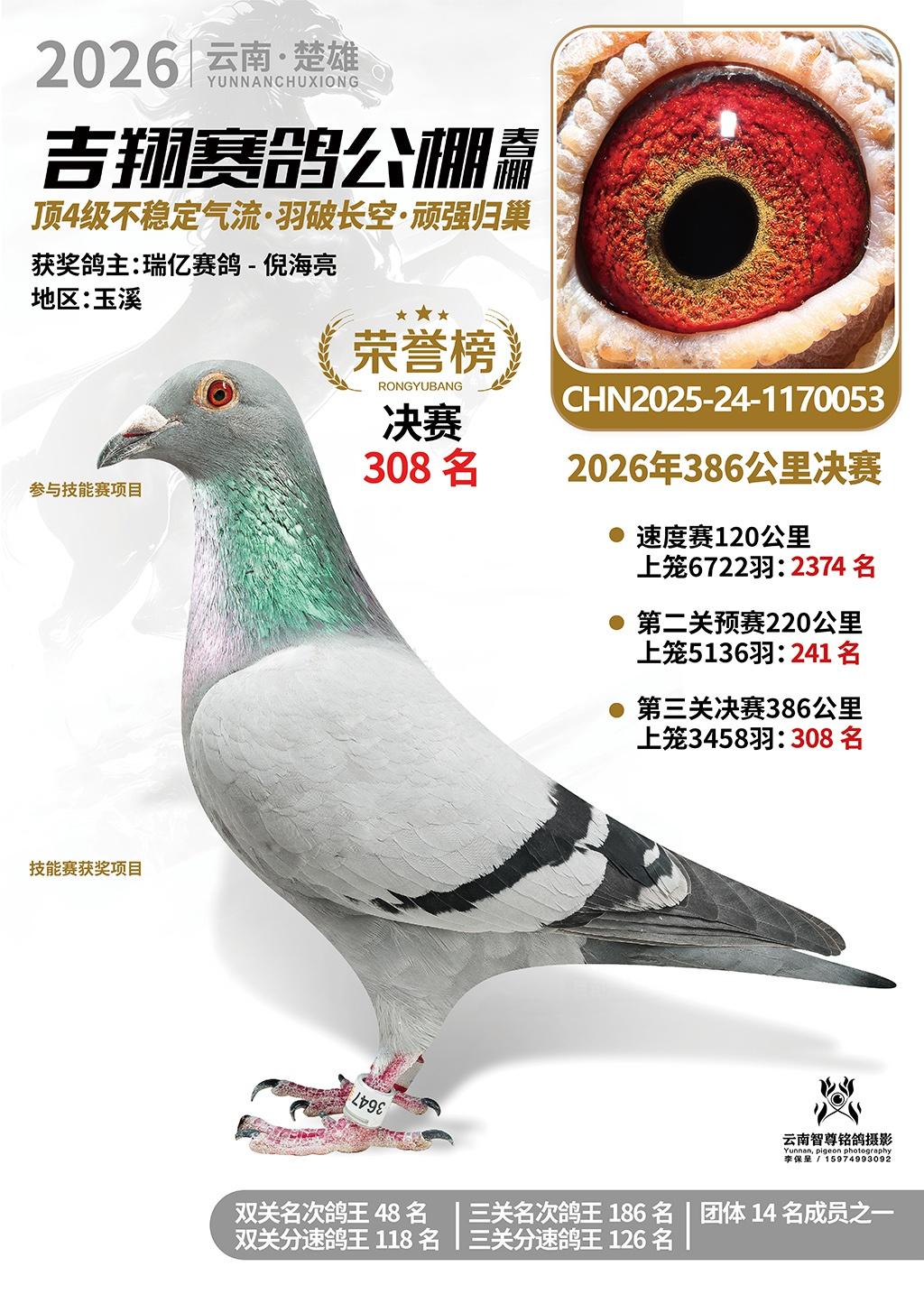 楚雄吉翔公棚(春棚)2026年386公里决赛获奖鸽欣赏