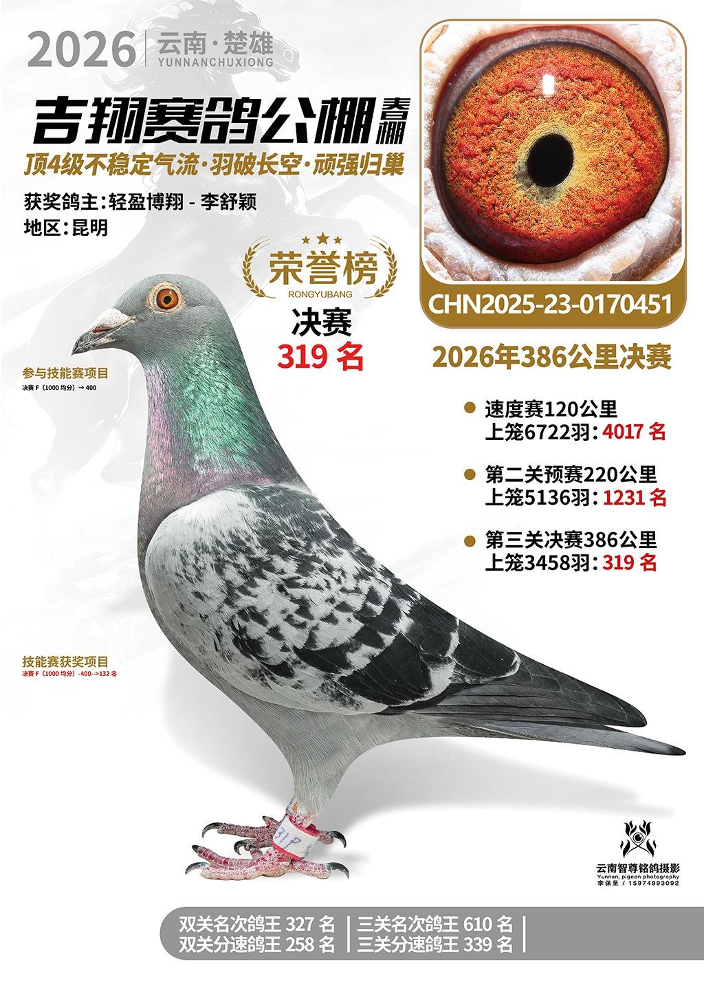 楚雄吉翔公棚(春棚)2026年386公里决赛获奖鸽欣赏