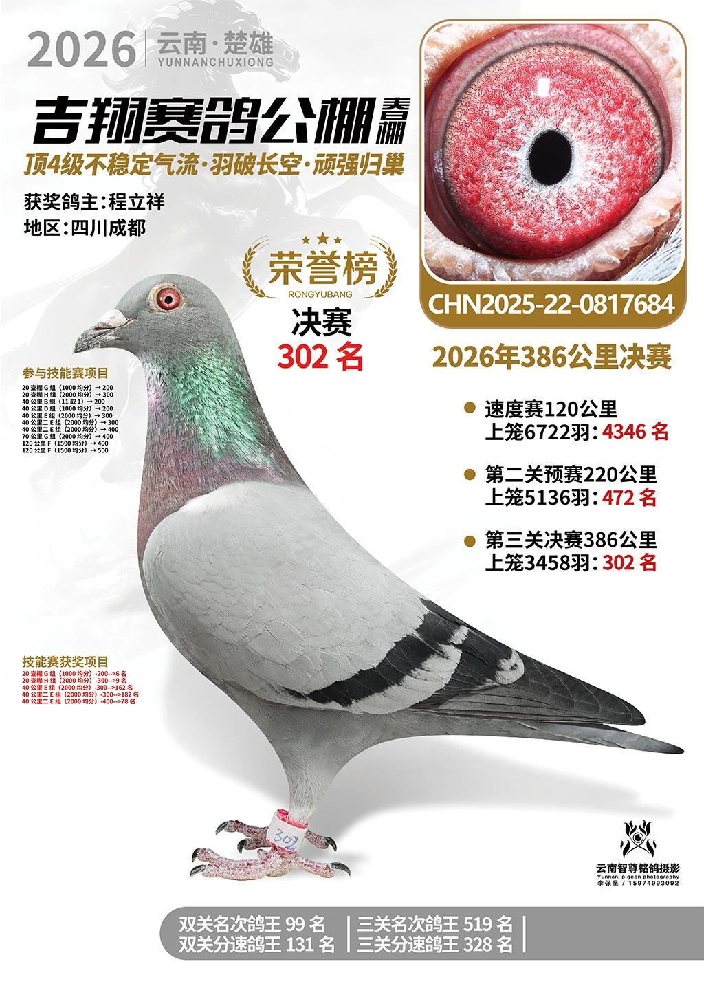 楚雄吉翔公棚(春棚)2026年386公里决赛获奖鸽欣赏