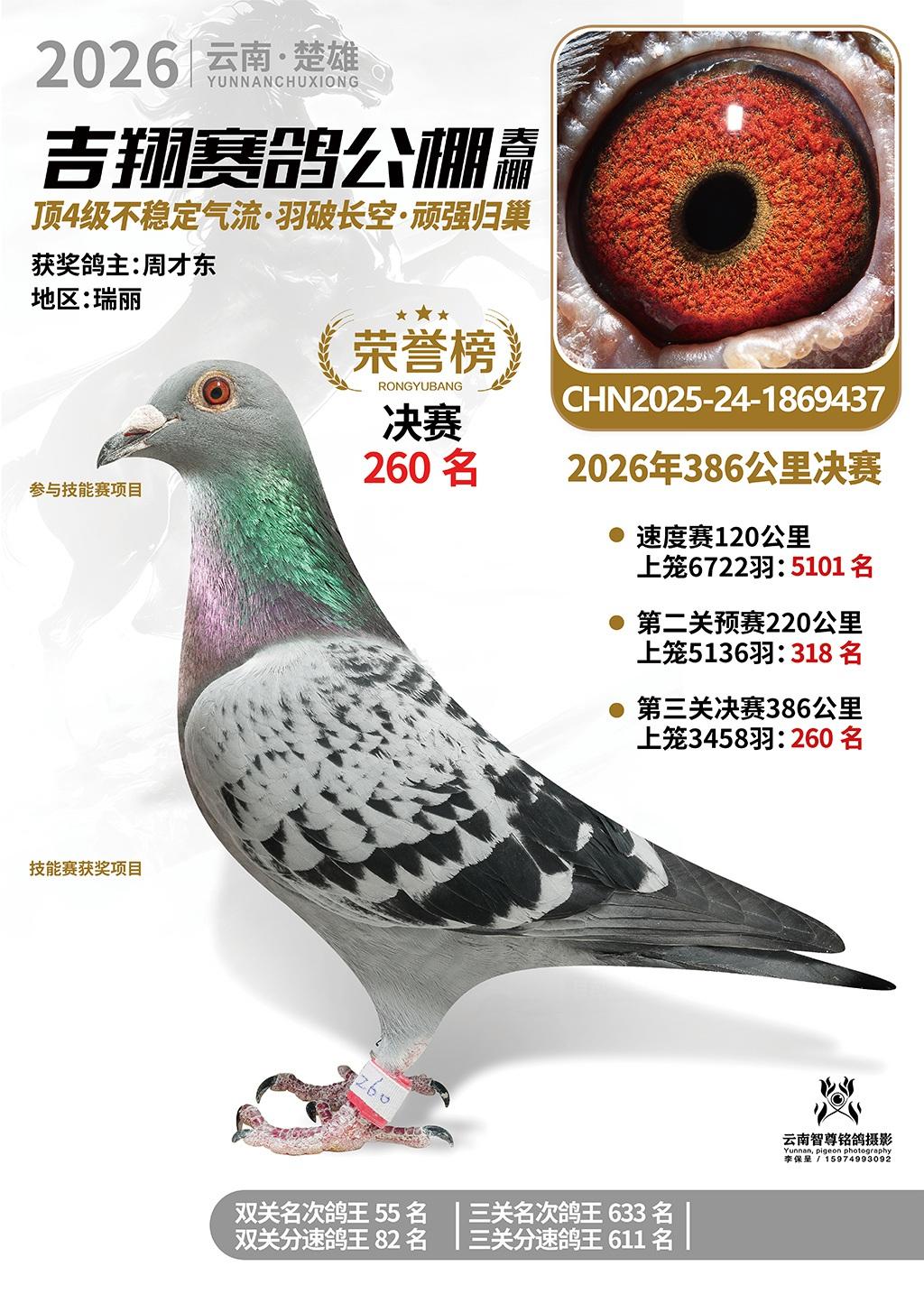 楚雄吉翔公棚(春棚)2026年386公里决赛获奖鸽欣赏