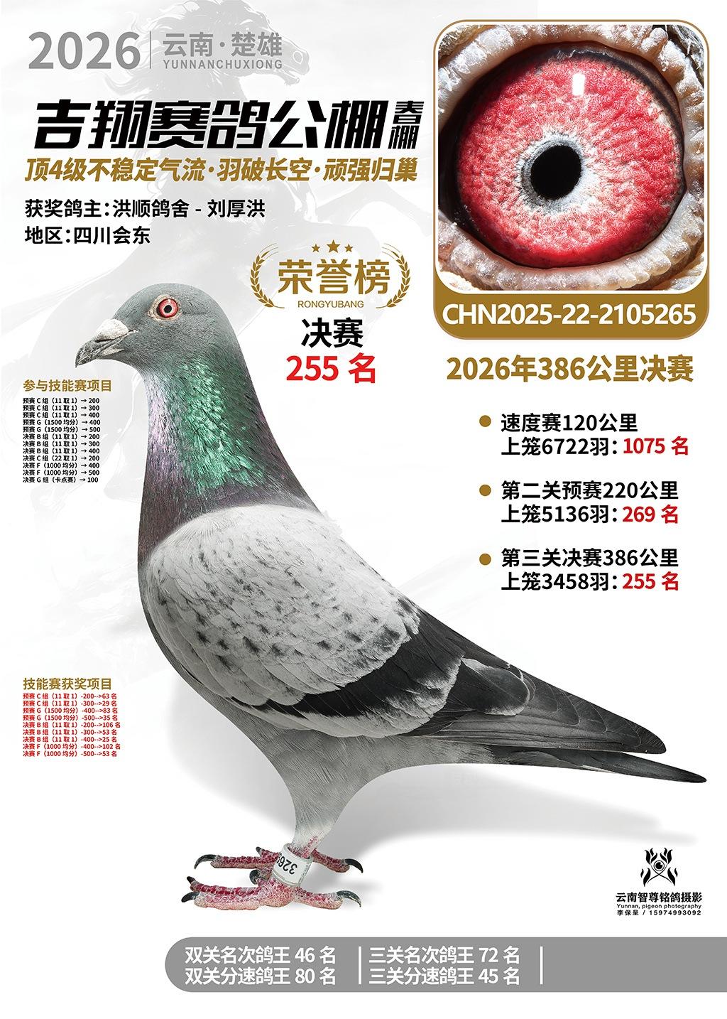 楚雄吉翔公棚(春棚)2026年386公里决赛获奖鸽欣赏