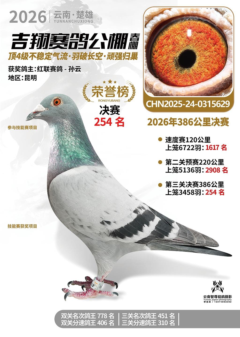楚雄吉翔公棚(春棚)2026年386公里决赛获奖鸽欣赏