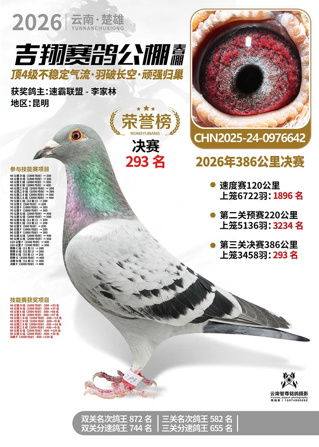 楚雄吉翔公棚(春棚)2026年386公里决赛获奖鸽欣赏