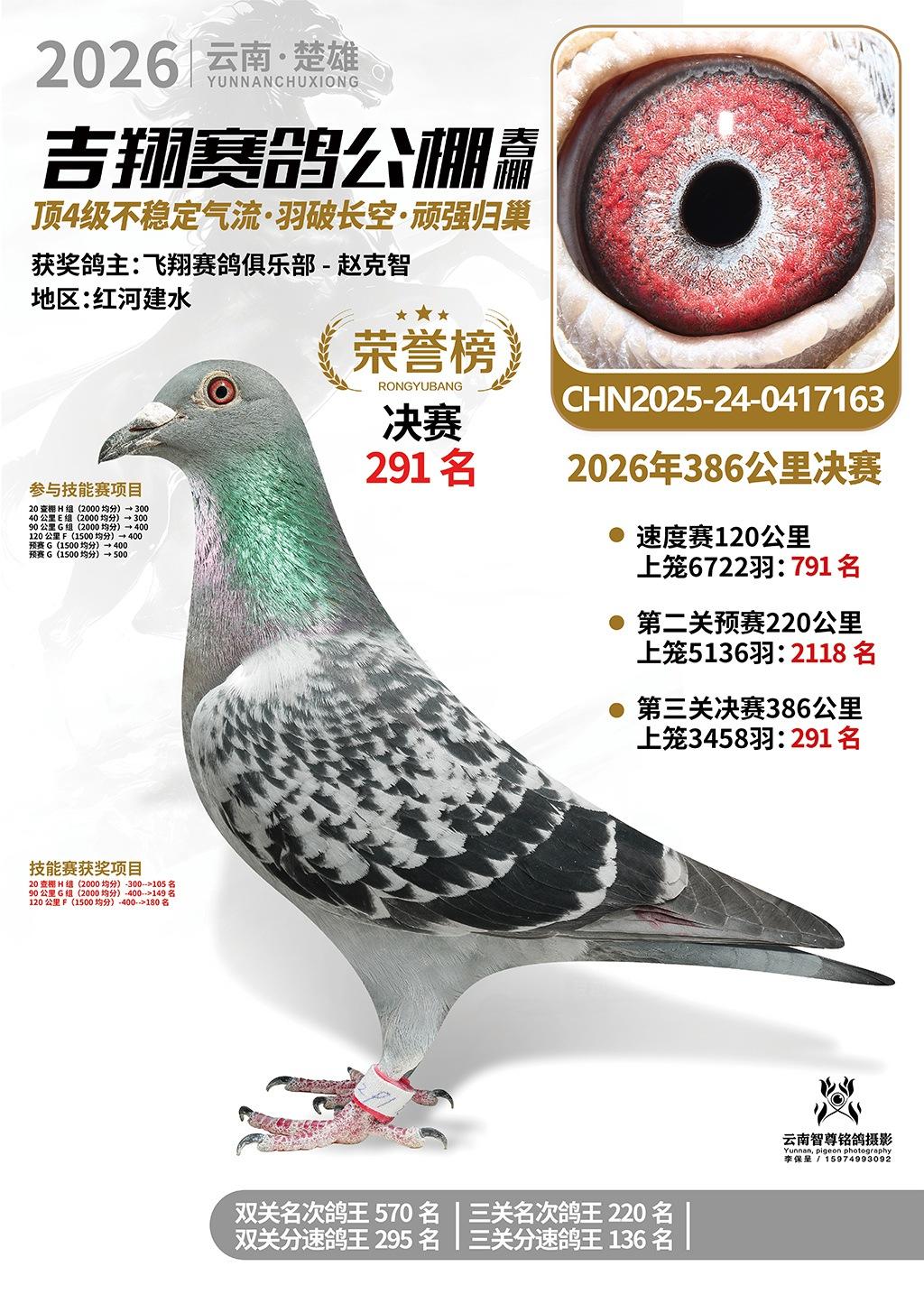 楚雄吉翔公棚(春棚)2026年386公里决赛获奖鸽欣赏