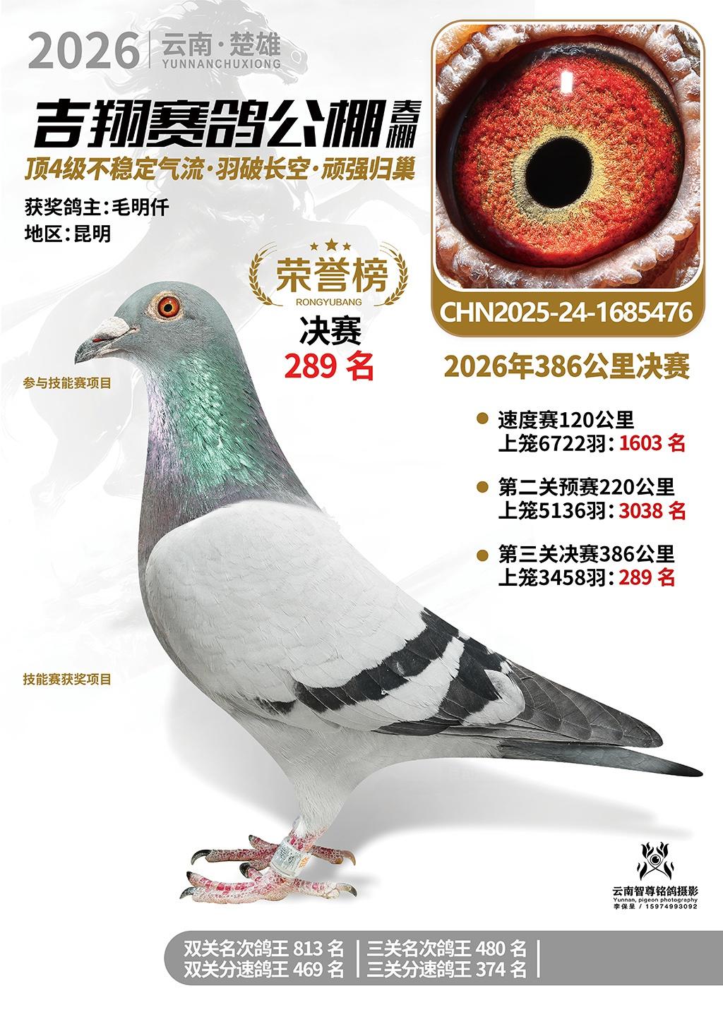 楚雄吉翔公棚(春棚)2026年386公里决赛获奖鸽欣赏