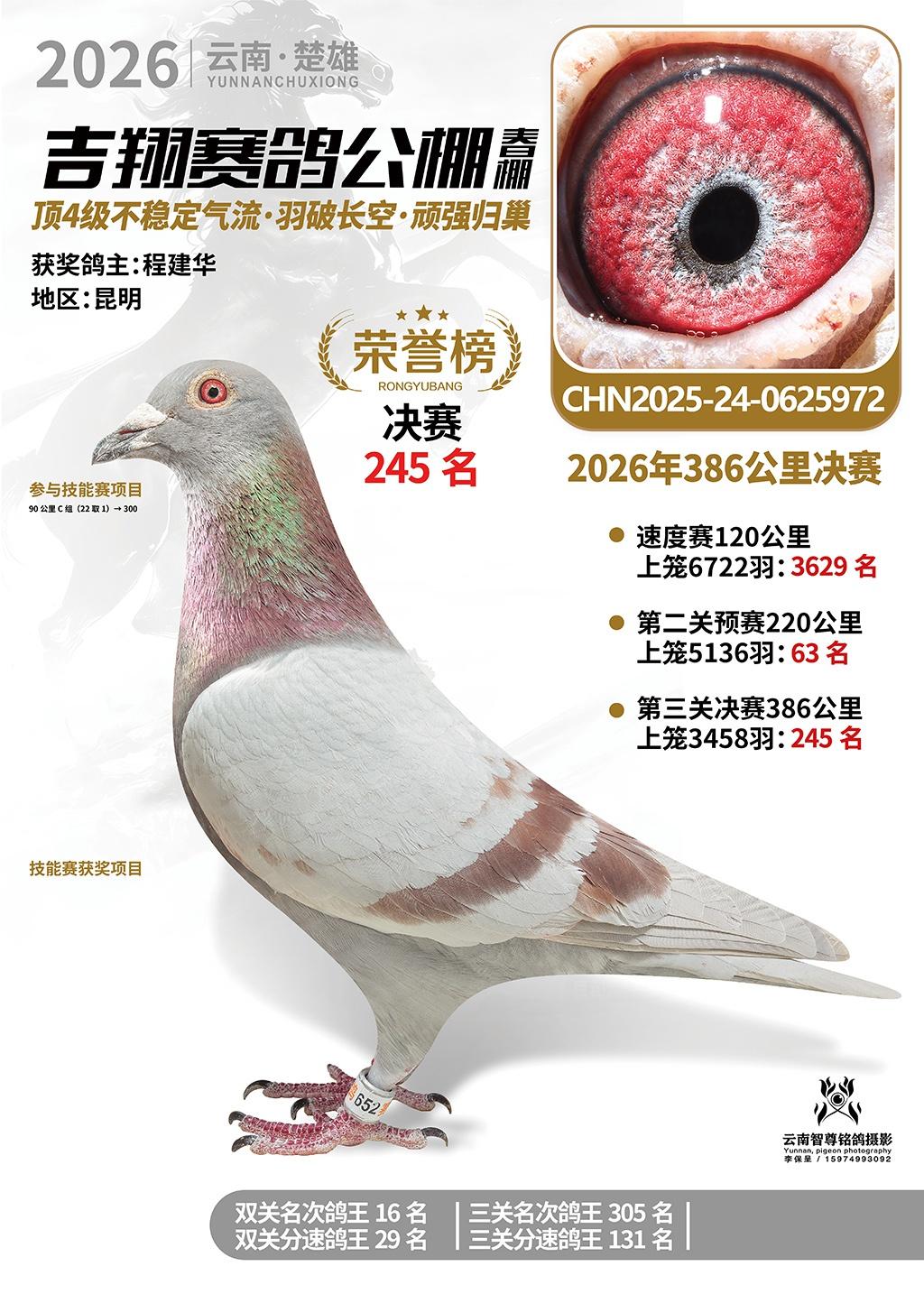 楚雄吉翔公棚(春棚)2026年386公里决赛获奖鸽欣赏