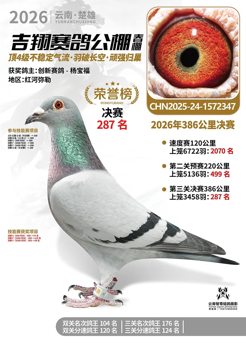 楚雄吉翔公棚(春棚)2026年386公里决赛获奖鸽欣赏