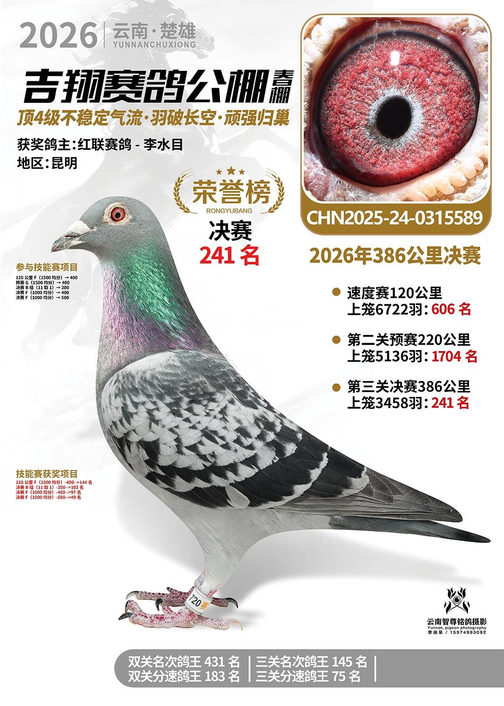 楚雄吉翔公棚(春棚)2026年386公里决赛获奖鸽欣赏