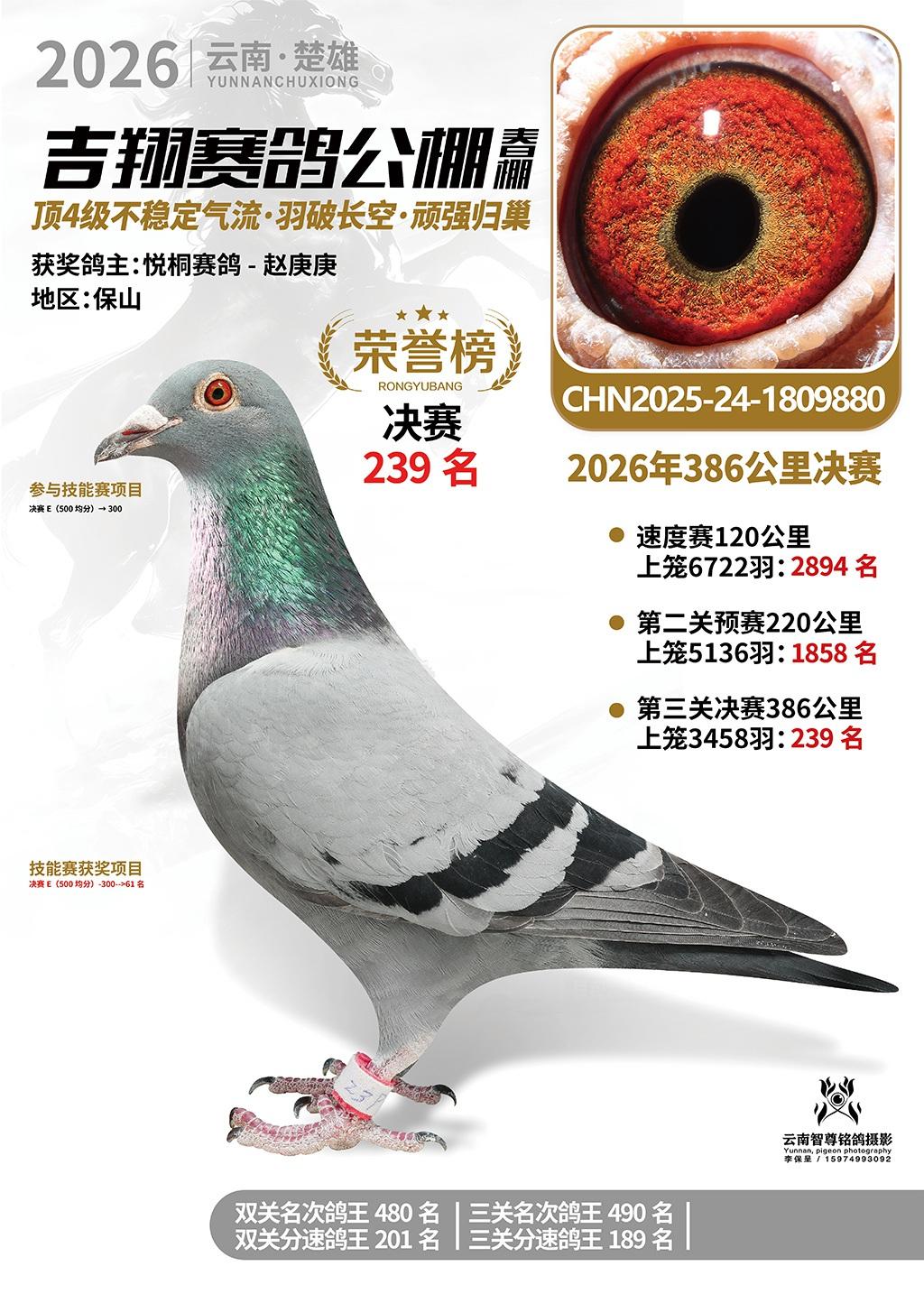 楚雄吉翔公棚(春棚)2026年386公里决赛获奖鸽欣赏
