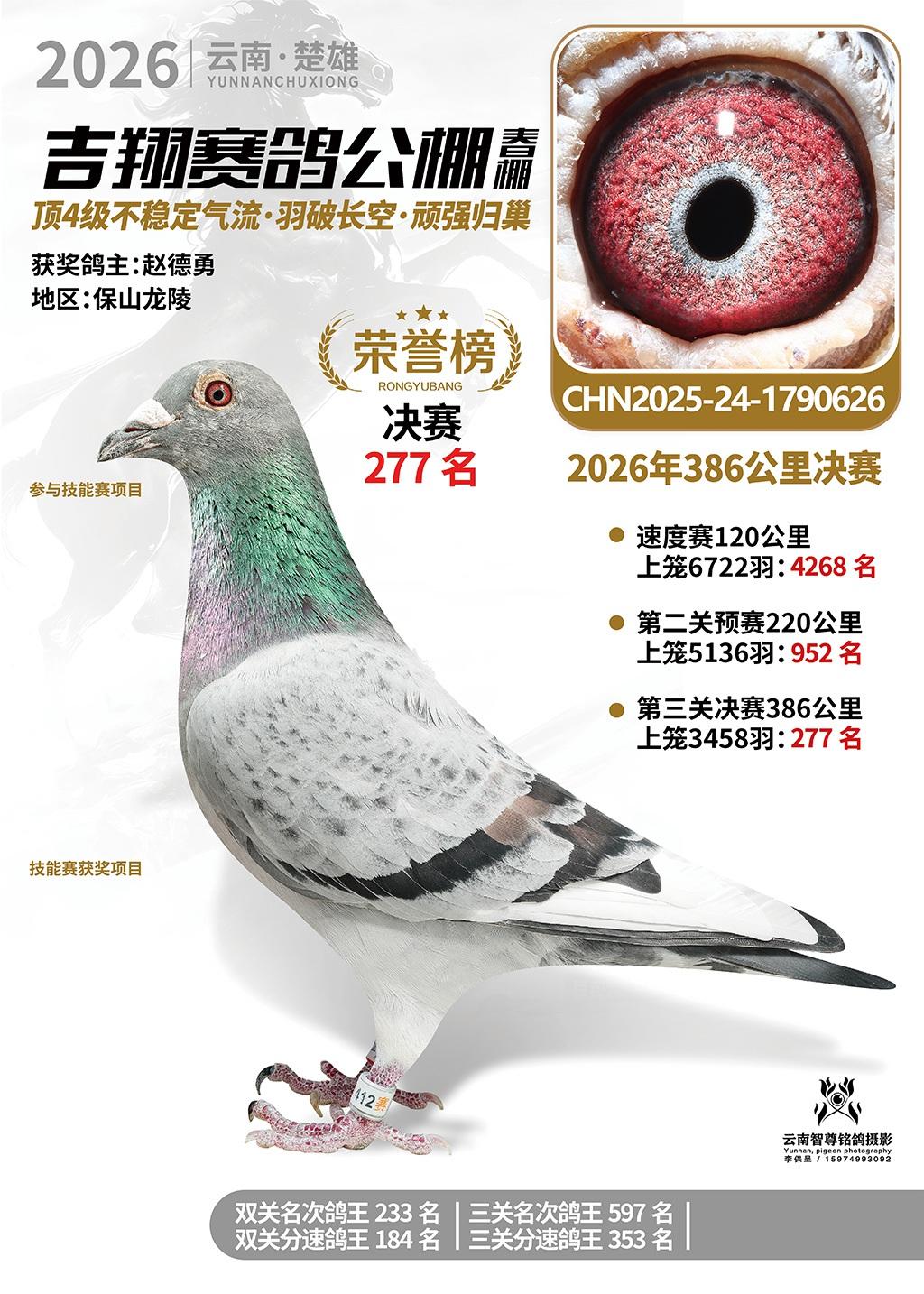 楚雄吉翔公棚(春棚)2026年386公里决赛获奖鸽欣赏