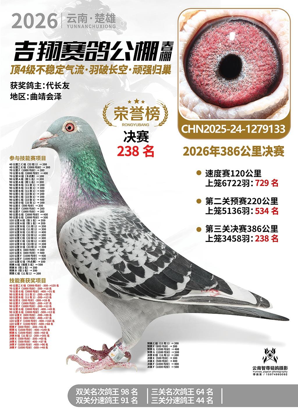 楚雄吉翔公棚(春棚)2026年386公里决赛获奖鸽欣赏