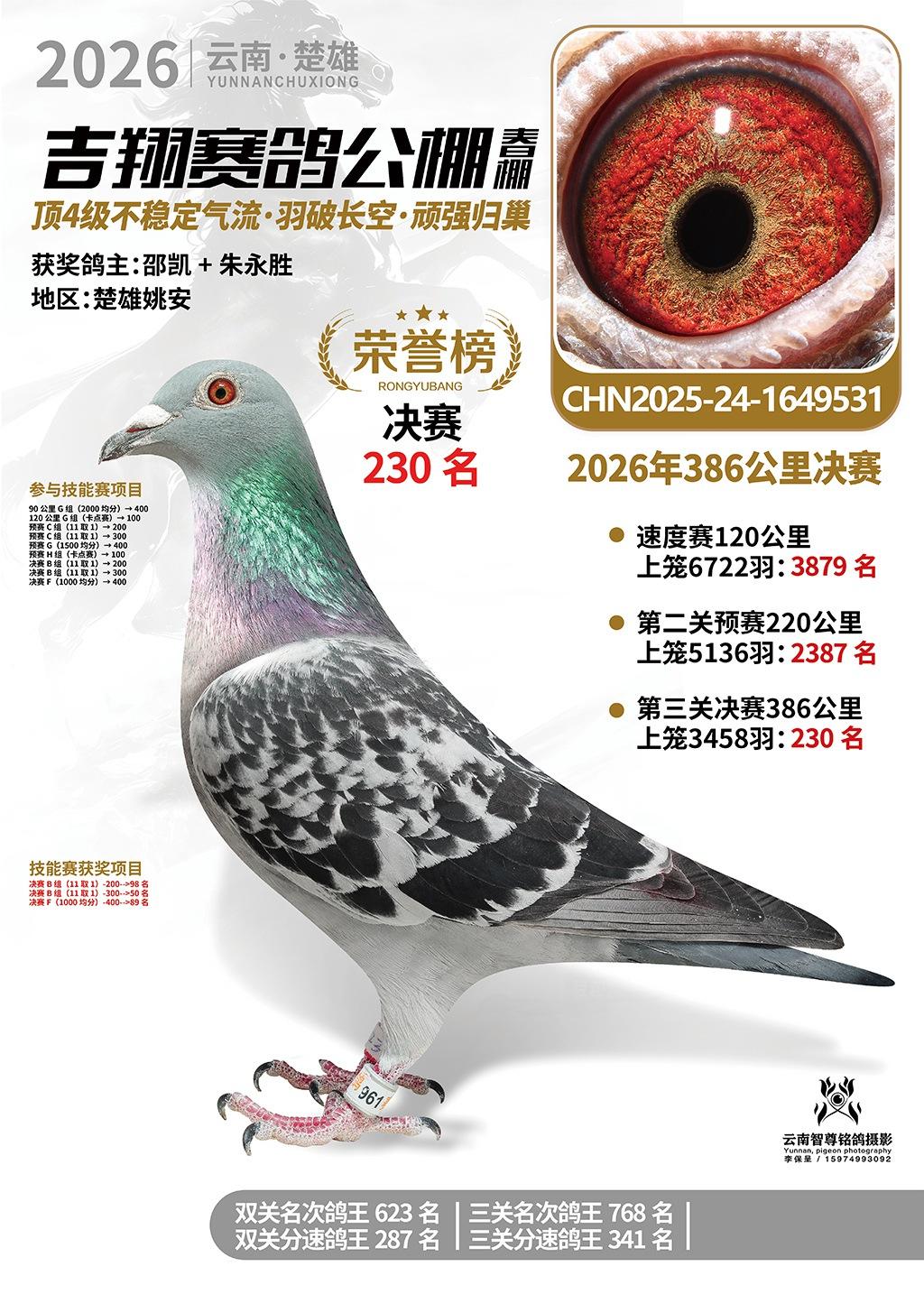 楚雄吉翔公棚(春棚)2026年386公里决赛获奖鸽欣赏