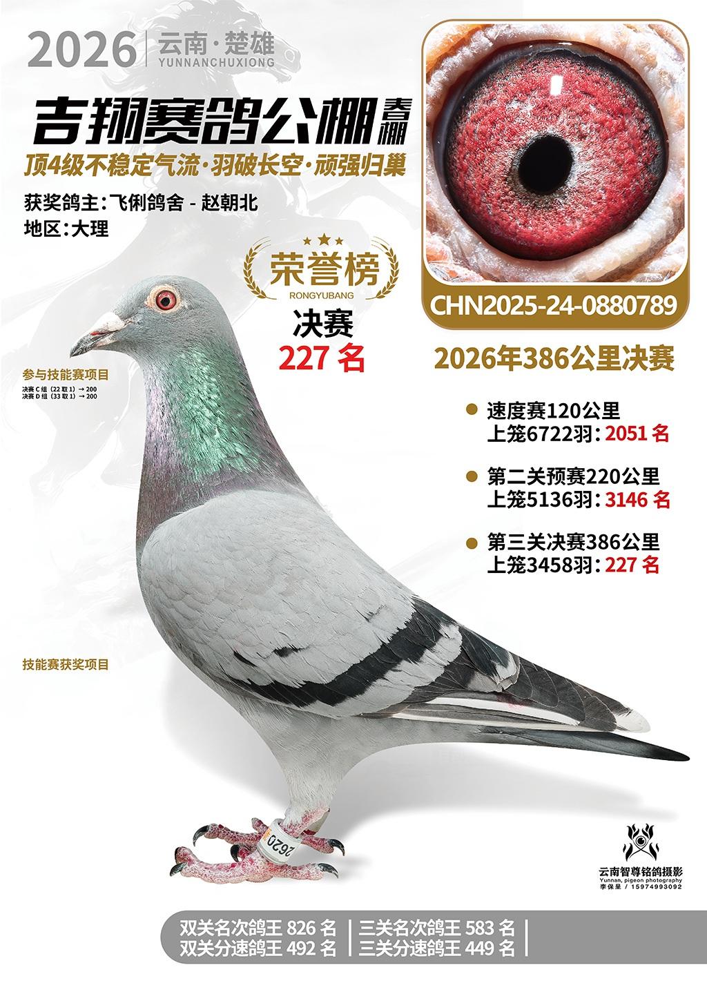 楚雄吉翔公棚(春棚)2026年386公里决赛获奖鸽欣赏