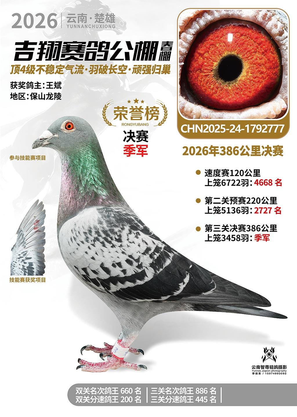 楚雄吉翔公棚(春棚)2026年386公里决赛获奖鸽欣赏