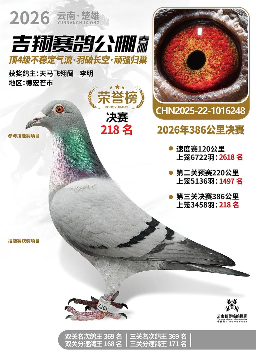 楚雄吉翔公棚(春棚)2026年386公里决赛获奖鸽欣赏