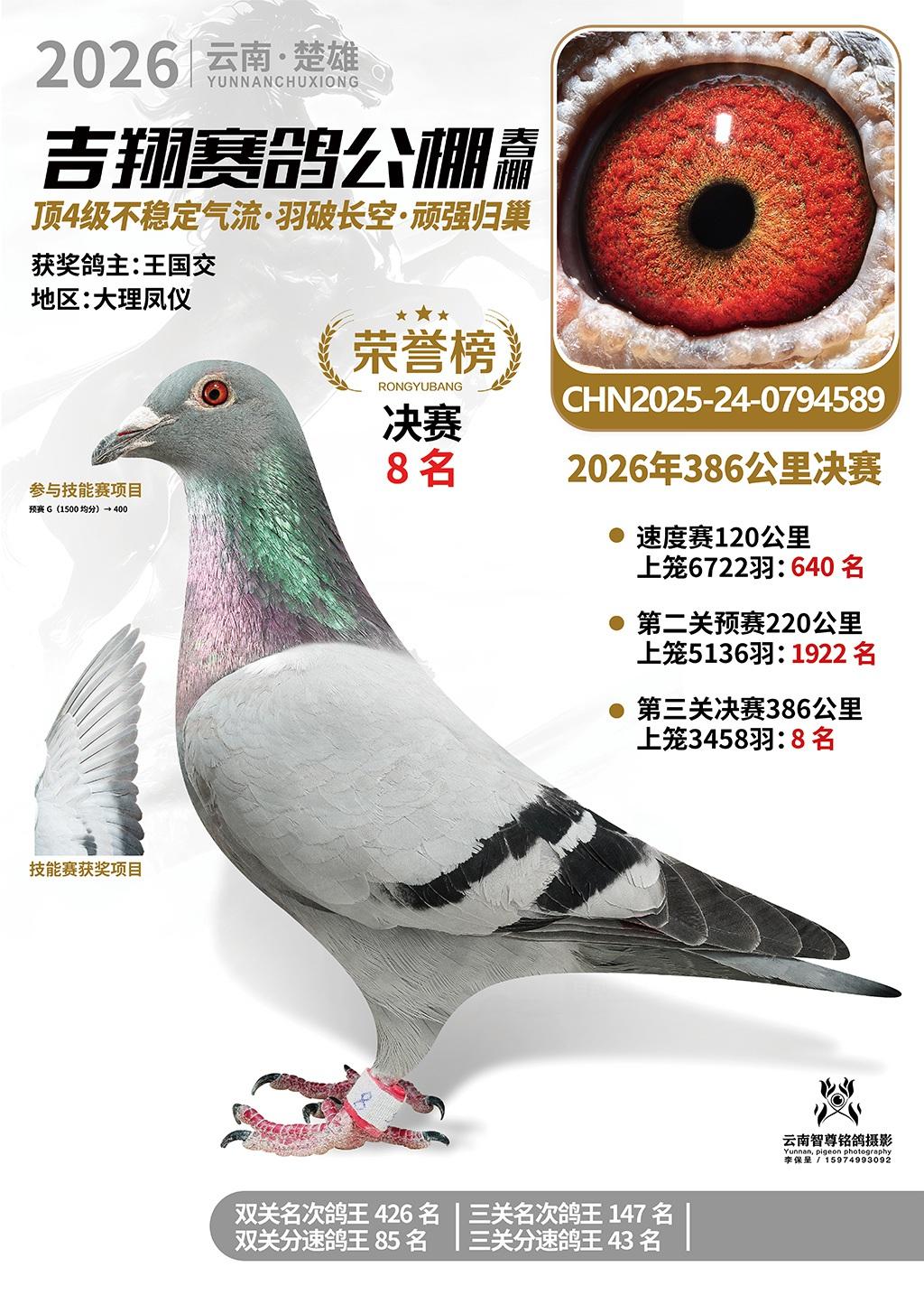 楚雄吉翔公棚(春棚)2026年386公里决赛获奖鸽欣赏