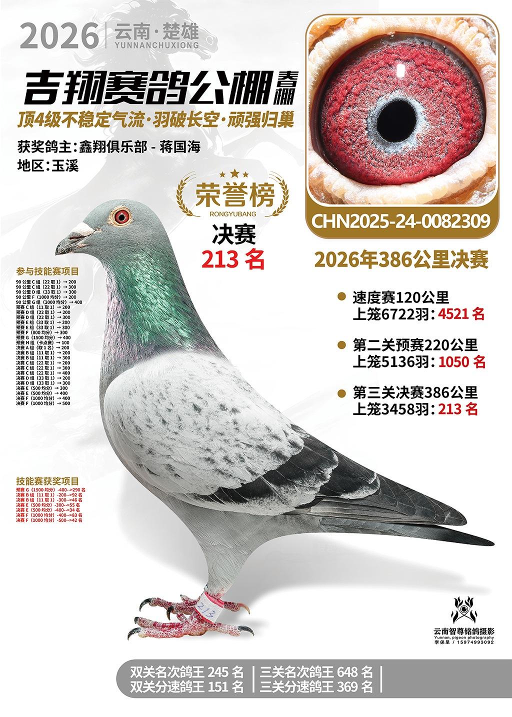 楚雄吉翔公棚(春棚)2026年386公里决赛获奖鸽欣赏