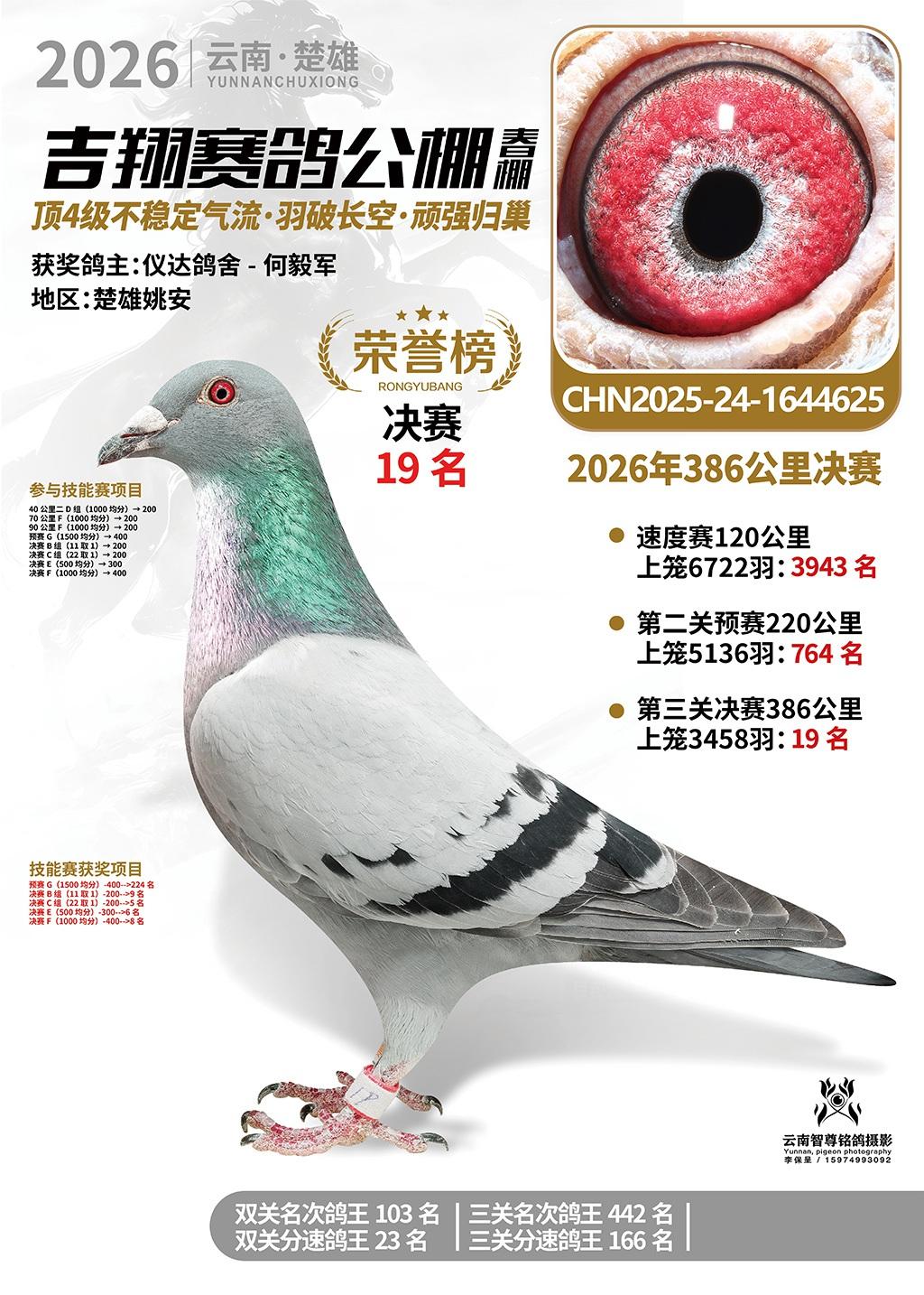 楚雄吉翔公棚(春棚)2026年386公里决赛获奖鸽欣赏