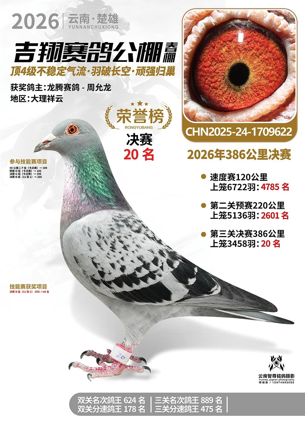 楚雄吉翔公棚(春棚)2026年386公里决赛获奖鸽欣赏