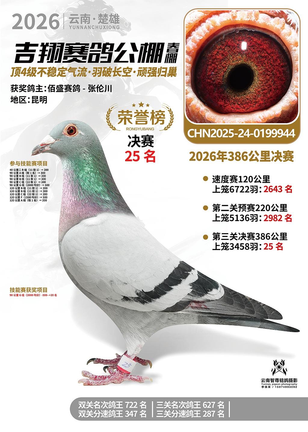 楚雄吉翔公棚(春棚)2026年386公里决赛获奖鸽欣赏