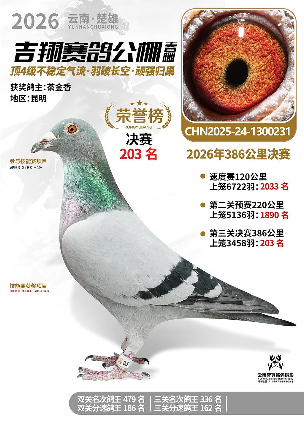 楚雄吉翔公棚(春棚)2026年386公里决赛获奖鸽欣赏