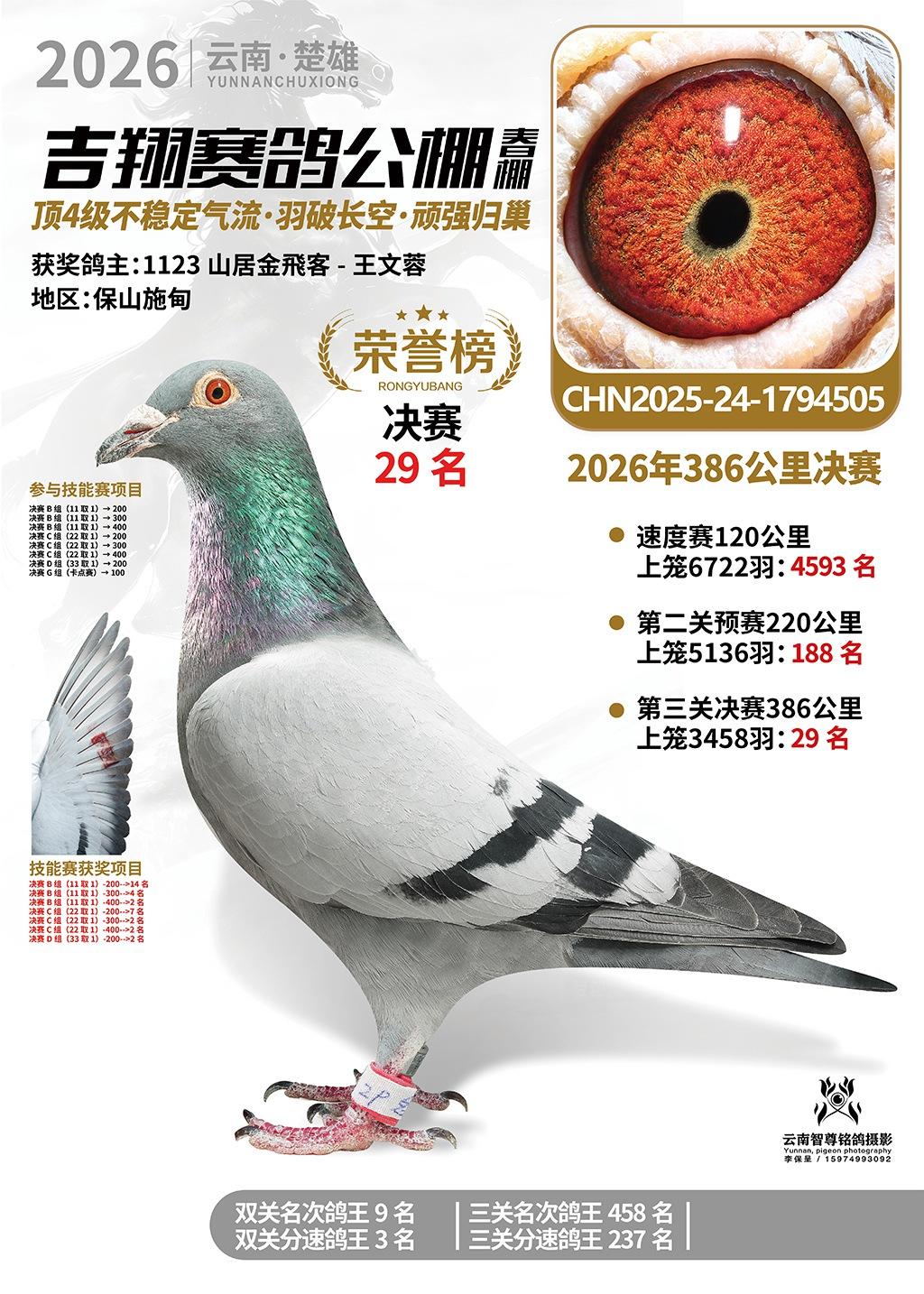 楚雄吉翔公棚(春棚)2026年386公里决赛获奖鸽欣赏