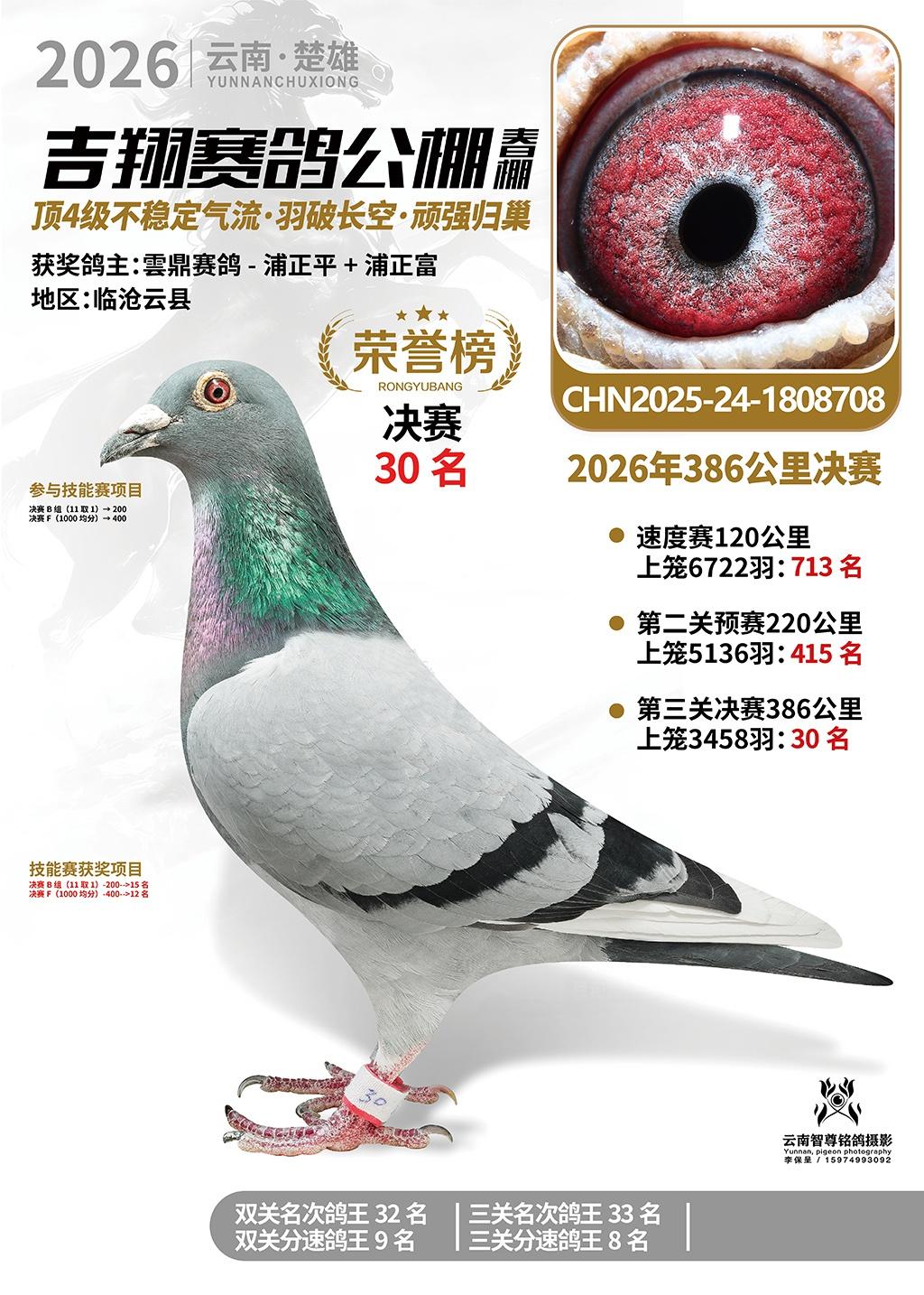 楚雄吉翔公棚(春棚)2026年386公里决赛获奖鸽欣赏