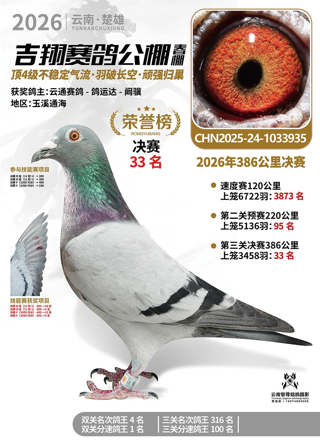 楚雄吉翔公棚(春棚)2026年386公里决赛获奖鸽欣赏