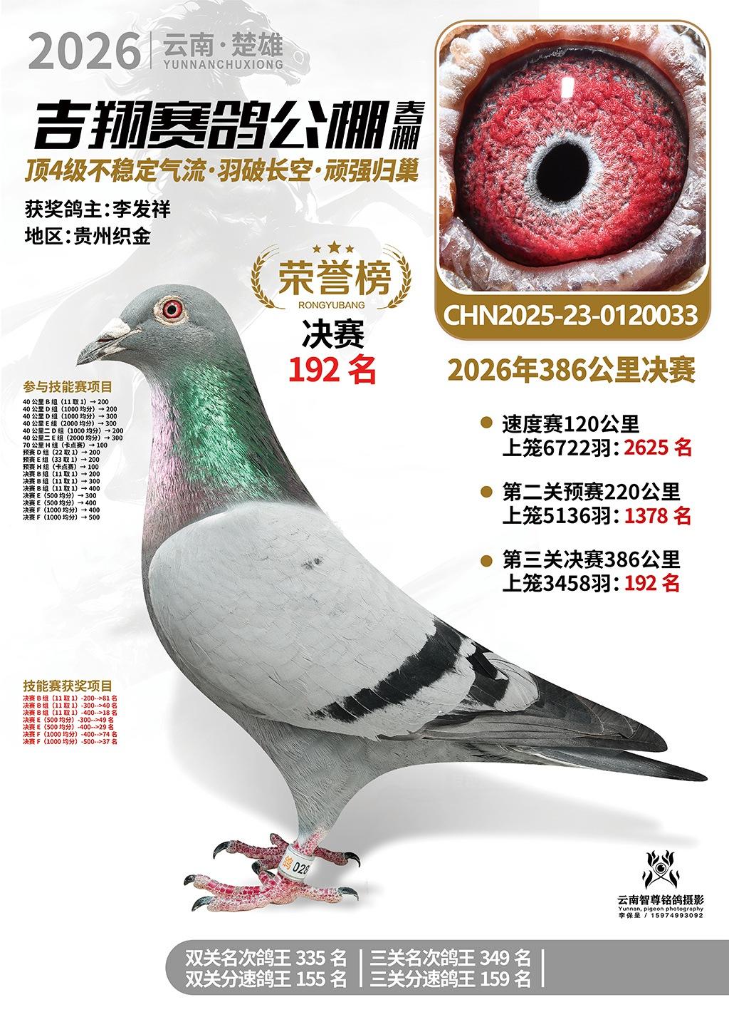 楚雄吉翔公棚(春棚)2026年386公里决赛获奖鸽欣赏