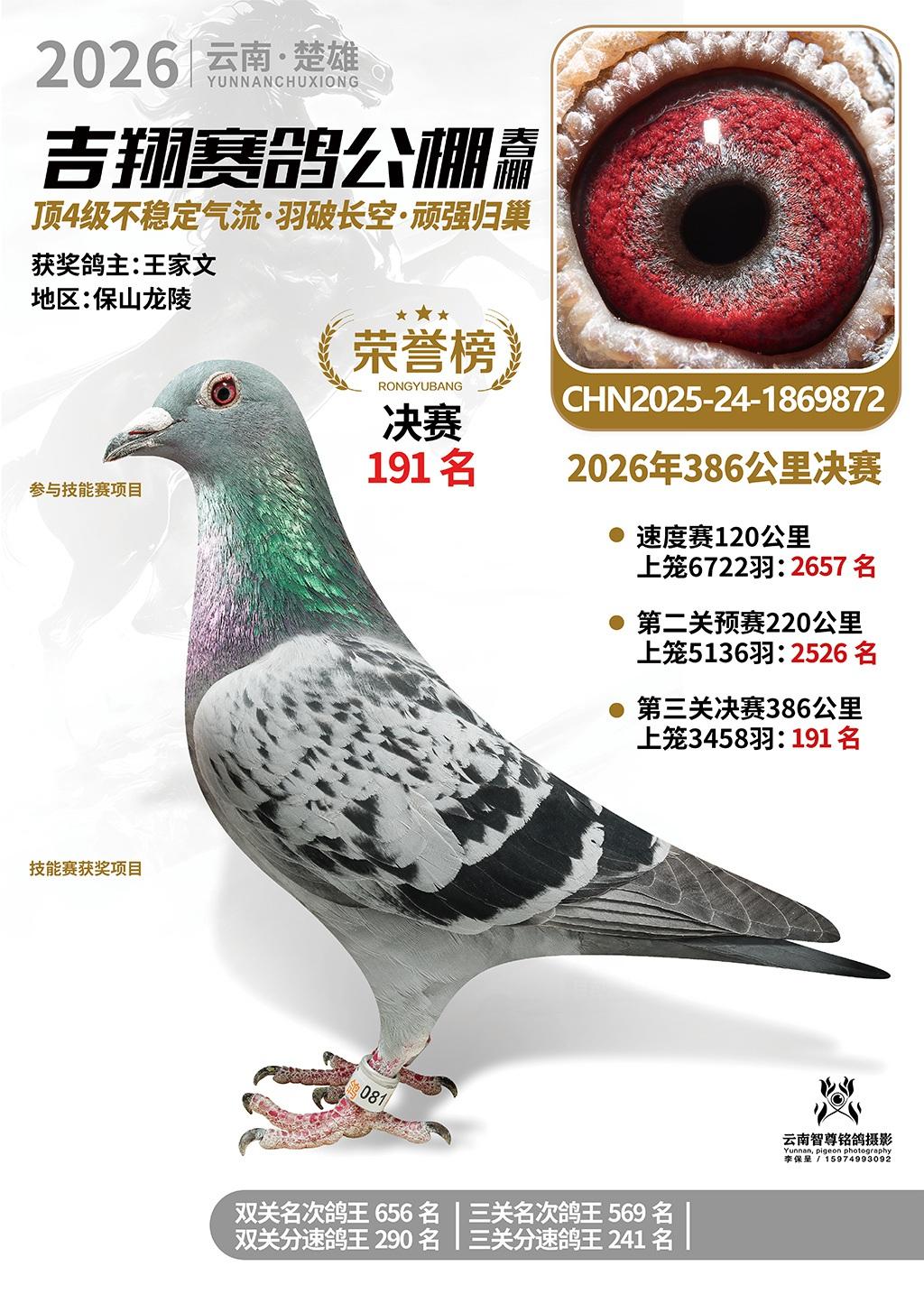 楚雄吉翔公棚(春棚)2026年386公里决赛获奖鸽欣赏