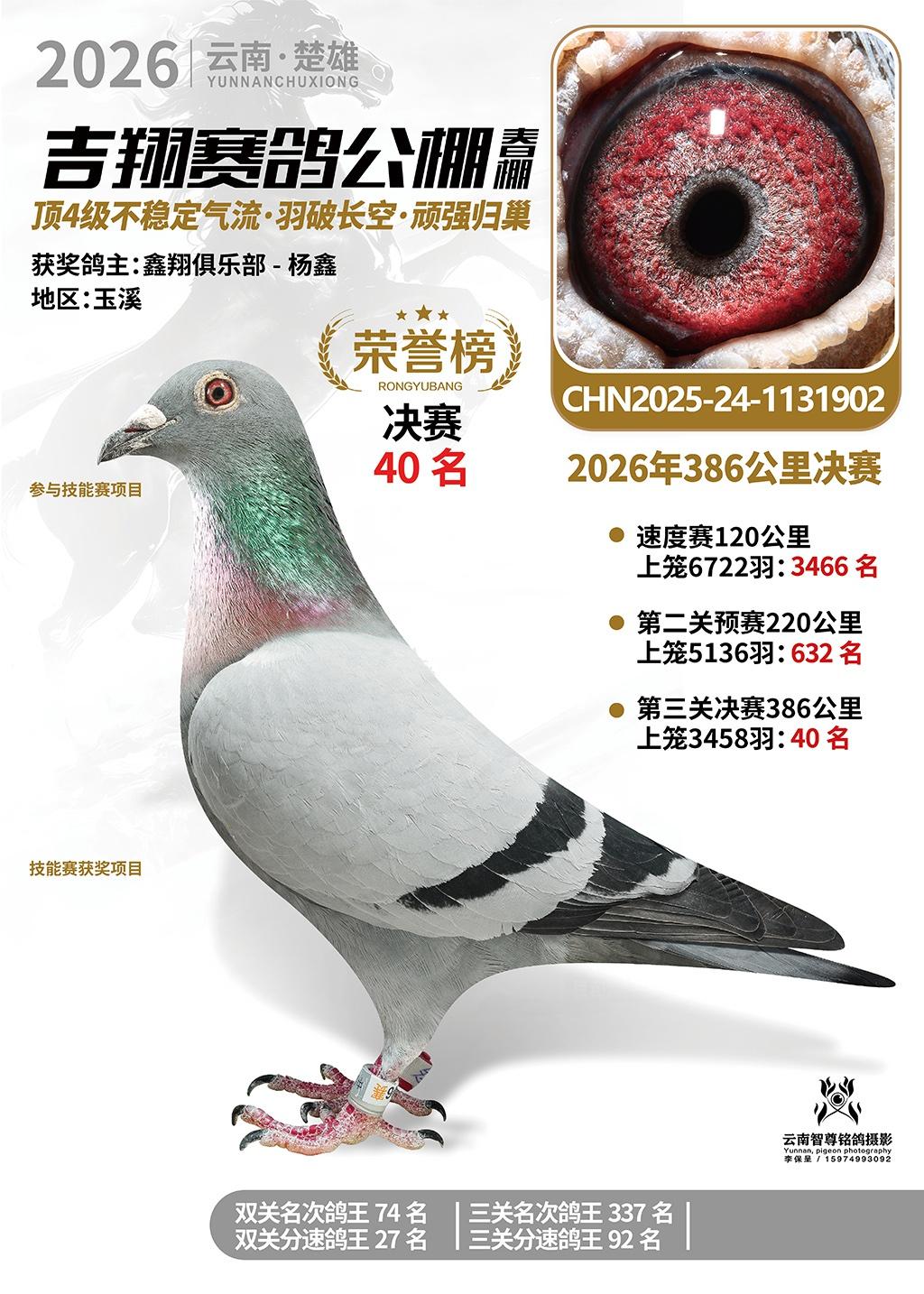 楚雄吉翔公棚(春棚)2026年386公里决赛获奖鸽欣赏